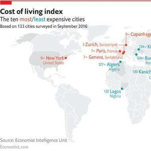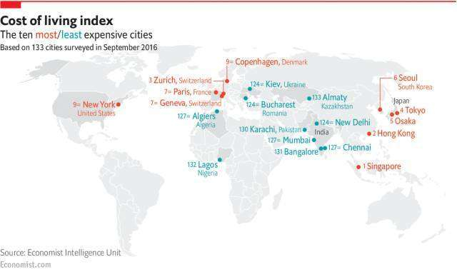 经济学人智库(The Economist Intelligence Unit)最新发布《全球城市生活成本调查》显示,新加坡连续四年成为生活成本最高的城市,其成本比排名第9的纽约贵20%,比第2名的香港贵5%。