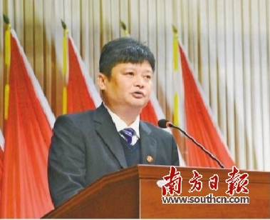 | 新当选的英德市人民政府市长肖勇科发表就职感言。 |