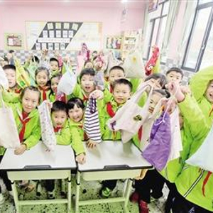 班主任赵小霞说,课堂上孩子们产生的垃圾都装在布袋里,放学时再分类处理,然后把布袋带回家清洗,“他们从读一年级开始,就是书包里每天装着环保垃圾袋来上学。”