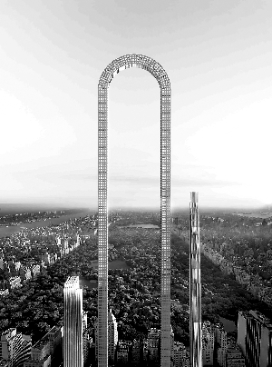 美国纽约繁华地段计划建起一座倒U形的高楼,预计建成后将成为世界上最长建筑物。