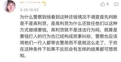 有网友表示:设想一下,一个血气方刚的年轻男人,在被催债人员非法拘禁控制的情境下,目睹母亲被以极端的方式当众强制猥亵、侮辱,而警方又没有干预、制止,也没有询问、了解就离开,当他试图冲破控制唤回警察的过程中被催债人员继续非法控制和拦截,如果你处于这样的混乱的情境下,手里碰巧有一把水果刀,你会怎么做?