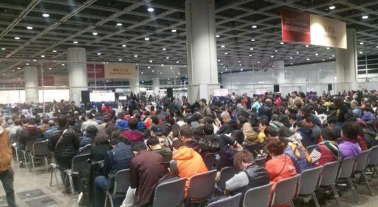 现场直击:投票结束,进入点票环节。目前,已有大批香港市民在点票中心的公众区静待选举结果。照片来源:香港《大公报》