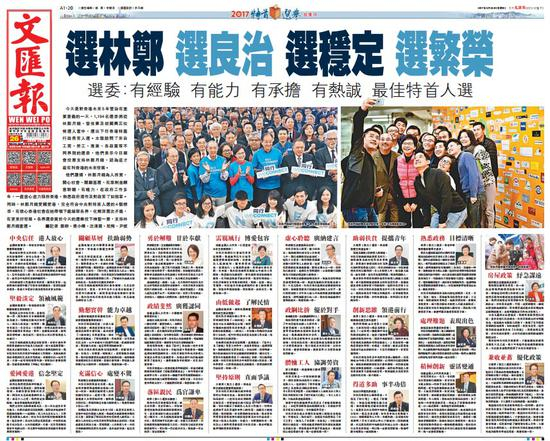 今日(26日 星期日)香港《文汇报》头版特刊版面。