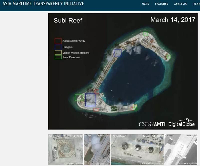 该组织公布多张3月卫星照片称,中国在南沙群岛永暑礁、渚碧礁和美济礁上建成航海、航空、雷达和防御设施。其负责人波林说,从照片中可以看到永暑礁和渚碧礁有新的雷达天线阵,“所以预计很快将部署”。