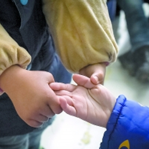 | 自闭症儿童在上课时相互握手问候。(资料图片)新华社发 |