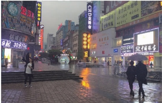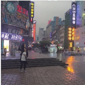 3月28日17时左右,雨中的五一广场霓虹灯已开始闪烁,大部分商家仍开门营业。而当记者前往世纪情珠宝时,门店已开始为结束当天的营业做准备。众所周知,该店曾是五一商圈珠宝行业的一面旗帜。