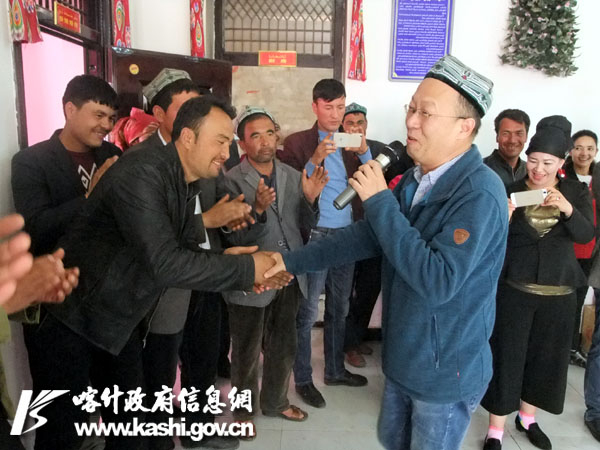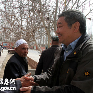 不多时车就临近吐古其乡库木巴(12)村村委会,翘首以盼的村民早就按捺不住热切地心情,结亲干部一下车,就被乡亲们热情包围着。深情的拥抱握手、诚挚的问候让结亲干部们应接不暇,心里的顾虑也被这样如火如荼的浓情驱散。