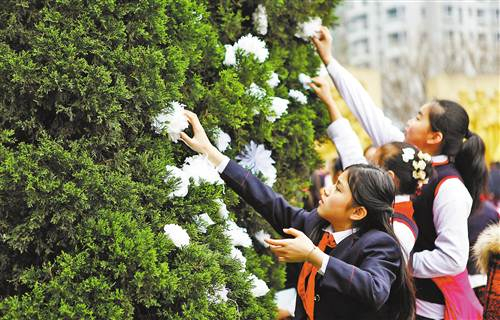 3月30日,永川区红旗小学五年级师生到桂山公园革命烈士纪念碑,开展清明扫墓活动。500余名师生向烈士敬献小白花、默哀致敬。通讯员 陈仕川 摄