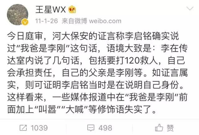 不仅如此,在当初案发后,很多关于肇事者的父亲李刚的传言,比如他有五套房,他是河北省高官女婿的说法,也都被一一澄清。王星就于2011年1月30日在他的微博上写到: