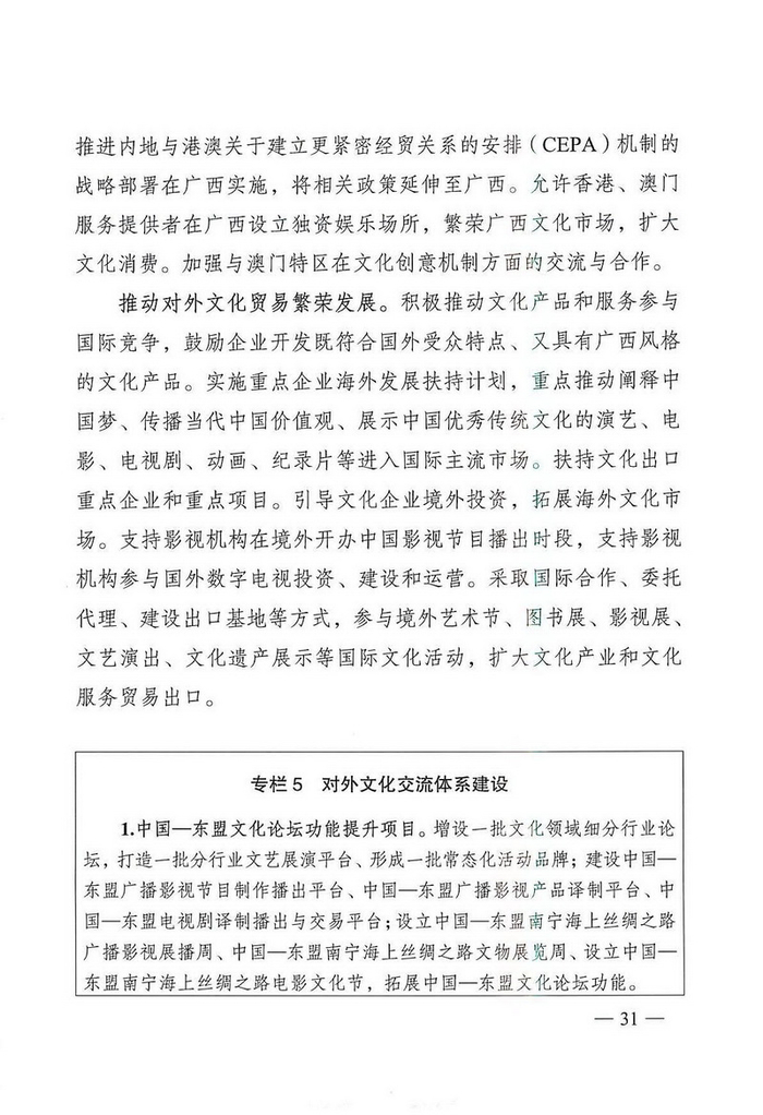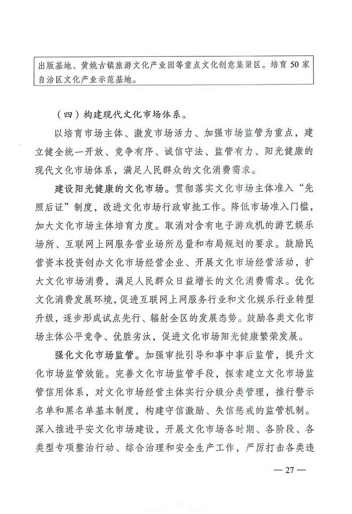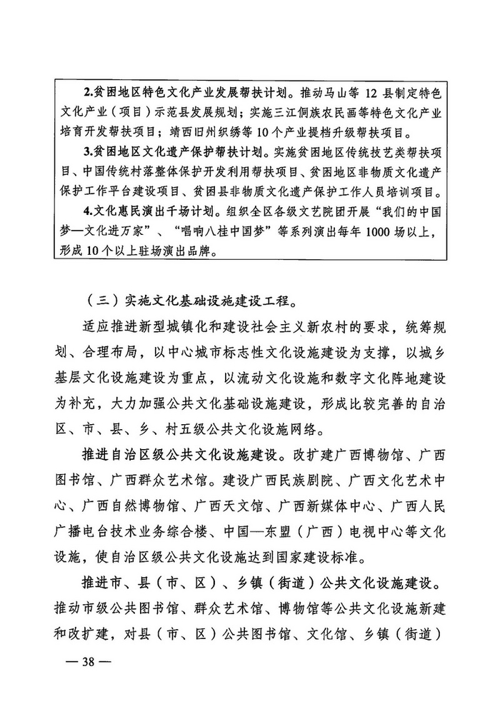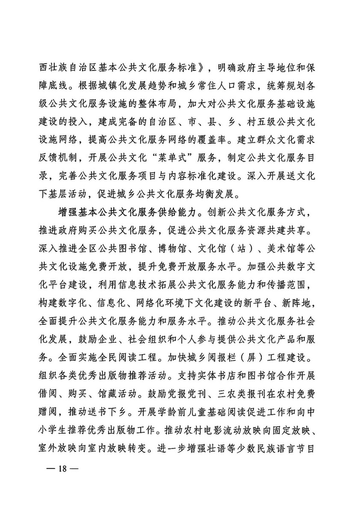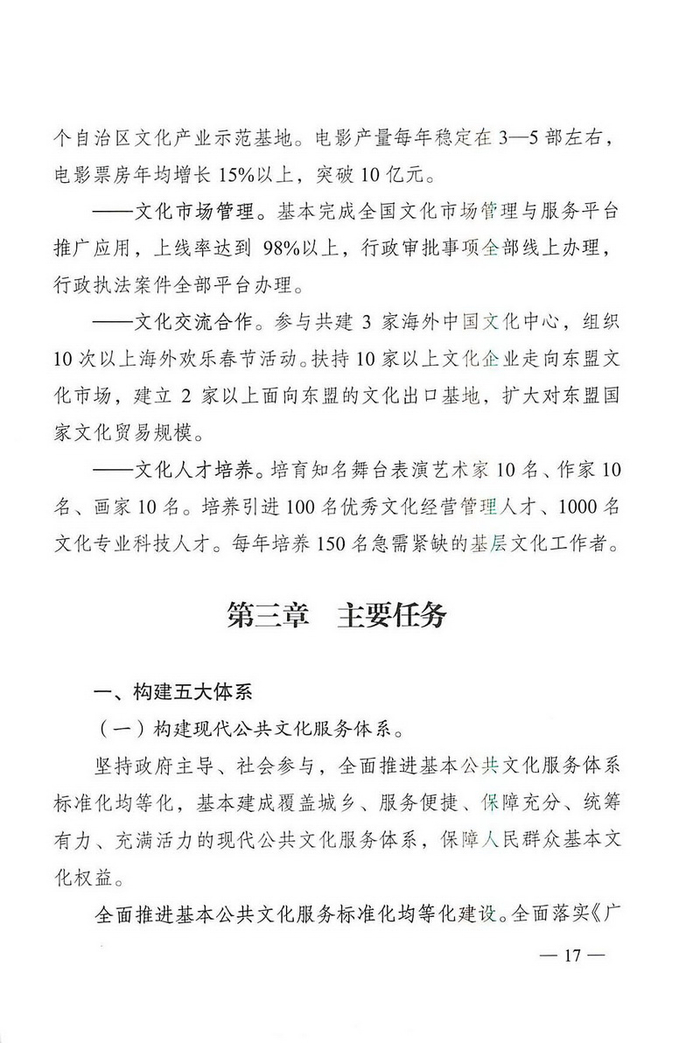 中国经济网北京4月1日讯 广两壮族自治区文化厅网站消息,近日,广两壮族自治区人民政府办公厅通知印发《广西文化发展“十三五”规划》。据中国经济网文化产业频道(微信号:cewenhua)了解,该《规划》总结了“十二五”时期,广西文化建设的成果,规划了“十三五”时期的文化建设目标、任务,在文化设施建设、公共文化服务、文艺精品创作生产、文化遗产保护利用、文化产业发展、文化市场管理、文化交流合作、文化人才培养方面做了规划。>>>更多政策可查看中国经济网“中国文化产业政策库”