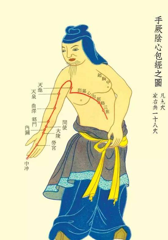 方法:用一只手沿对侧心包经的路径,从中指尖向上沿途按揉,内关、极泉等穴重点按揉。如果觉得按揉比较麻烦,沿心包经拍打也能获得同样的效果。