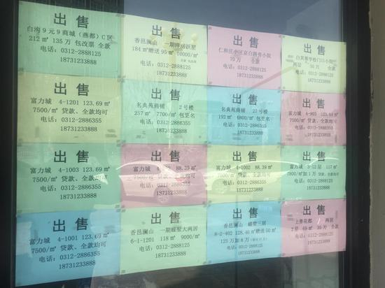 4月3日,中国房地产报记者在白沟的一家中介机构的门上看到贴着白沟镇楼盘的价格,大多数在7500元/平方米左右。置业经理告诉中国房地产报记者,这已经是十天前的价格,不具有任何参考价值,现在代理的二手房价格在12000元~22000元/平方米之间。“那个价格表是十天前的了,价格每时每刻都在变,我们也就干脆不更换了。”