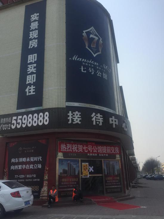 门店内有个置业经理在代理白沟镇乾城华府项目的一手房,由于所有楼盘已经停止销售,购房者可以在中介这里交纳25万元的排卡费,具体价格要等到开盘时才知道。“房源有1000多套,但是封盘了,排卡的有几百人,只有在这里才能帮你排卡,排卡费就是25万元。”