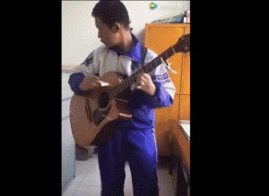 这段视频本是今年元旦时,刘嘉卓为学校晚会表演吉他弹奏,在办公室等候彩排时,几位老师随手拍下的。原本只是在老师朋友圈中流传,不知被谁传到秒拍上。