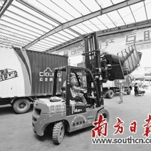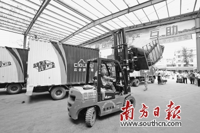“物流车辆锐减,效率却比以前更高。以前有100多家物流公司,路上全是等着装货的车。”唐坤刚说,该物流集散点自去年9月投入使用后,由广东云企与物流企业共同组建了一支车队,现在有50多辆车,通过统一调配,可及时将货物装车运走,基本上可以满足目前的货物转运需求。同时也减少了车流量,使车辆占道的现象不复存在,使交通堵塞得到了有效缓解。