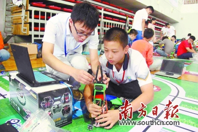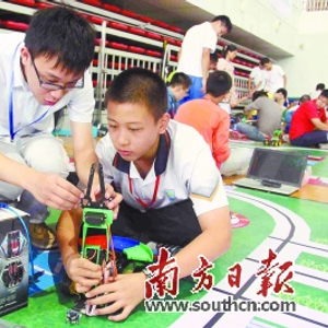 | 广州外国语学校的学生正在上科技选修课。南方日报记者 万稳龙 摄 |