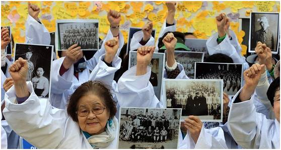 二战被强征到日本的韩国劳工受害者家属抗议慰安妇协议