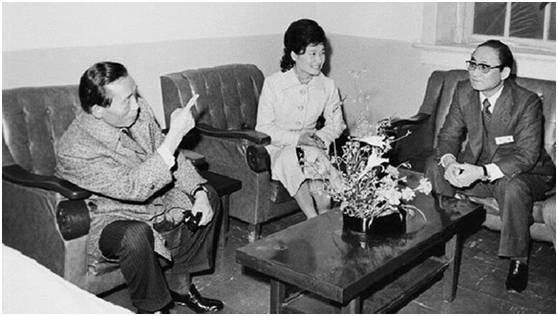 1969年,金荣洙的父亲金鹤烈(右一)与朴正熙(中)参加浦项综合制铁公司的一个仪式