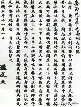 孙中山闻讯后悲痛欲绝,第二天即发函海内外哀告黄兴逝世的消息。过去讣告多由死者亲属发布,而黄兴逝世的讣告,则由孙中山单独署名发布。