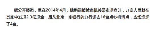 根据魏鹏远被查的公开报道,办案人员在其家中发现2.3亿现金,赃款烧坏4台点钞机,与剧情颇为相似: