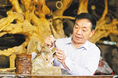“金丝楠木雕刻是个枯燥的工艺活,力道要恰到好处。”冯光俊说,沉得住气和胆大心细是雕刻金丝楠木作品的关键。