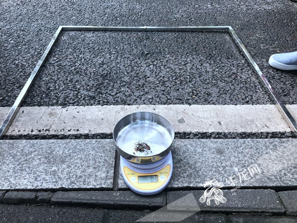 在中山四路选取的区域,积尘重量仅为0.5克。 记者 荚天宇 摄实施“以克论净” 主城区主干道每平米积尘不得超过5克