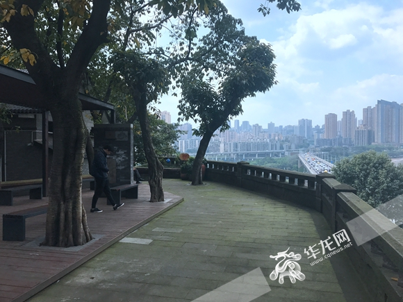在街道的尽头是一座观景台,在这里,可以远眺嘉陵江,居民们则在老黄葛树荫下聊天休憩。而谁也不曾想到,这块坝子曾经是私搭乱建的“重灾区”,经过整治,老旧社区也再次焕发出了新活力。