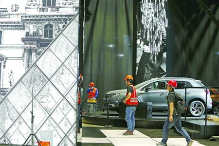 车展期间停车资源紧张,建议优先选择公共交通出行。 本版摄影/晨报记者 殷立勤各参展商正在抓紧时间布置场馆,各个入口的安检设备也已经到位。