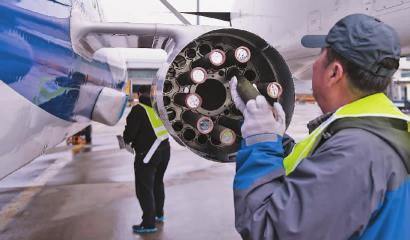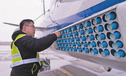 昨日中午,人工增雨飞机在长春龙嘉机场安装焰条 新文化记者 蒋盛松 摄