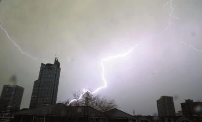 长春红旗街附近上空电闪雷鸣。昨日0时~16时,我省共发生闪电5879次 新文化记者 王强 摄