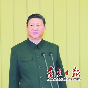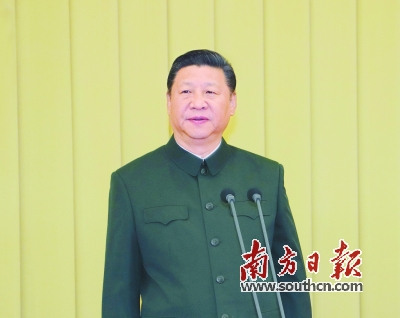 4月18日,中共中央总书记、国家主席、中央军委主席习近平接见新调整组建军级单位主官,并对各单位发布训令。这是习近平在发布训令。新华社发