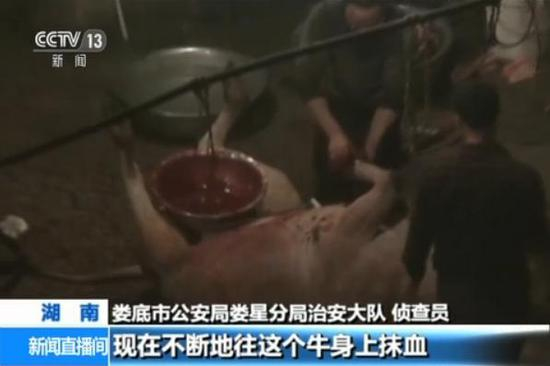湖南非法屠宰场给牛注水 300斤牛注100斤水(图)
