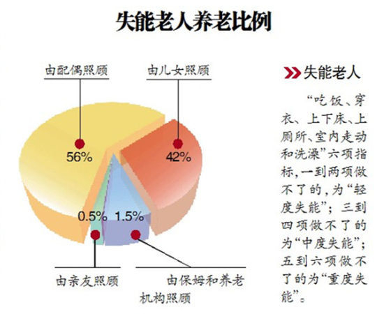 目前,我国2.22亿老年人中近1.5亿患有慢性病,失能和部分失能老人近4000万,完全失能老年人近1000万人,增加了老年人的健康服务需求和家庭负担。与身体健康的老人相比,失能老人面临更多的养老难题。