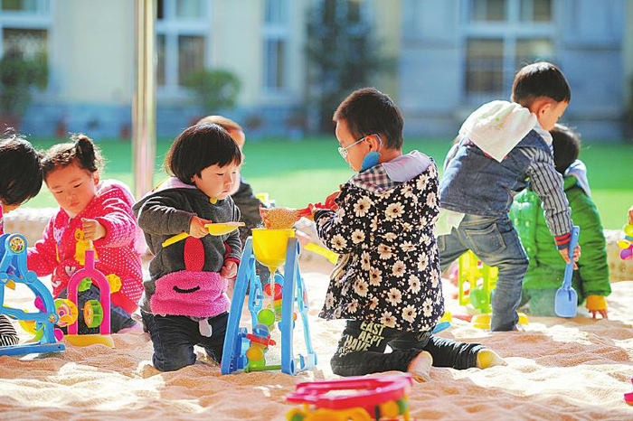 成都市双流区金桥幼儿园开发了回归大自然的沙石特色美术课程。(周开金 摄)