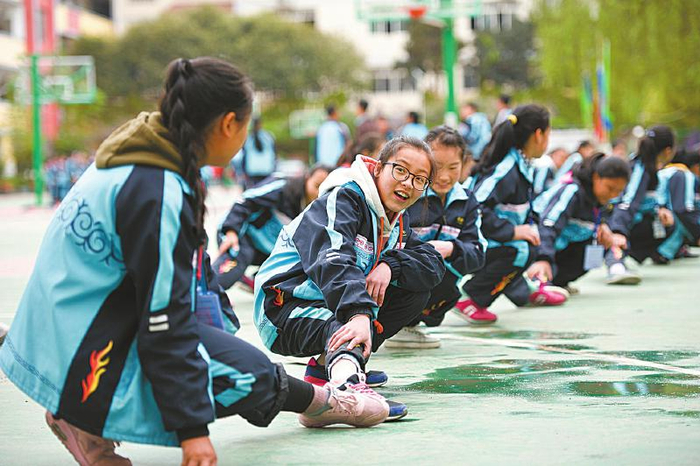 雷波县民族中学学生上体育课。(屈辉 摄)