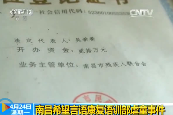 在这个康复机构的非企业单位登记证上,业务范围一栏写的是,语言康复;而业务主管单位,是南昌市残联。那么,怎么理解两者的关系?而对于媒体曝光的行为,主管单位又是否知情呢?
