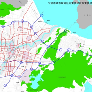 镇海大道(慈海路—绕城高速公路)、永茂路(慈海路—明海路)、北外环路—雄镇路、狮峰路—邵渡路—新星路—环城北路—中官路(世纪大道—东外环)、宁镇公路—车站路—城河路(世纪大道—招宝山大桥)、通途路、康桥路—大闸路—大庆南路—惊驾路—宁东路、中山路(绕城高速公路—福庆路)、百丈路—药行街—柳汀街—联丰路、环城南路、鄞县大道、鄞州大道(绕城高速公路—福庆路)、广元路—秋实路、机场路、江北大道—青林渡路—环城西路(机场路—杭甬高速公路)、九龙大道—大庆路—解放路—立交路—鄞奉路—广德湖路、江东北路—江东南路—宁南路(杭甬高速公路—绕城高速公路)、天童路(杭甬高速公路—绕城高速公路)、慈海路—中兴路—钱湖路(环城南路—鄞州大道)、望海大道—世纪大道、明海路—院士路—福庆路、东外环路、长江路(泰山路—恒山路)等城市重要道路沿线。