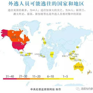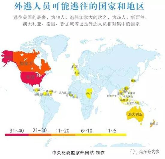 “海运仓内参”(ID:hycplb)注意到,在贪官外逃的国家和地区里,西方发达国家是首选,在中纪委发布的这张地图里也可清晰看出。美国、加拿大和澳大利亚,是外逃贪官的“首选”。