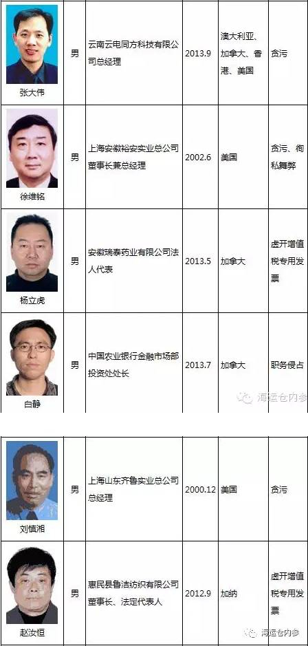 红色通缉令“榜上有名”者: