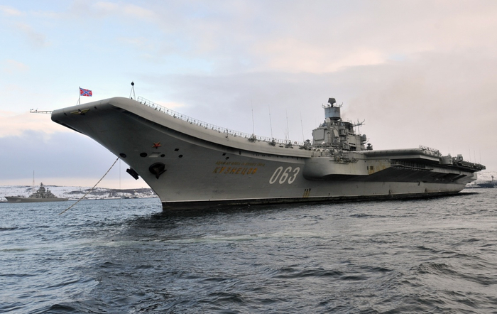 图片说明:俄罗斯“库兹涅佐夫”号航母。
