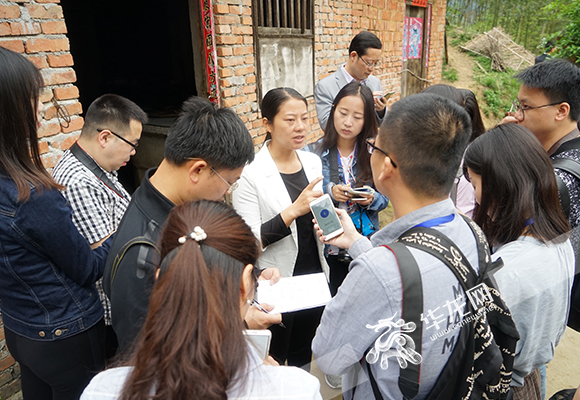 金寨县花石乡大湾村第一书记、扶贫工作队队长余静向记者介绍脱贫工作情况。 首席记者 徐焱 摄