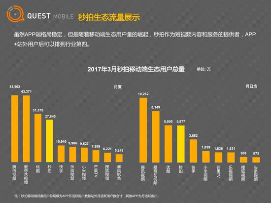如果大家有疑问的话,可以去跟韩坤总沟通和交流,因为他们做了非常好的案例。关于秒拍,虽然它是一个只有百万级的纯APP,可是整个秒拍覆盖的生态用户达到了2.7亿,超过四分之一的网民。