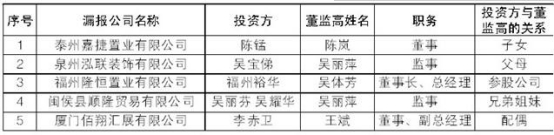 据《大众证券报》报道,记者接到投资者江先生投诉称,德艺文创招股说明书没有披露多名高管或其亲属对外投资事项。根据江先生提供的材料,共计有泰州嘉捷置业有限公司、泉州泓联装饰有限公司、福州隆恒置业有限公司、闽侯县顺隆贸易有限公司和厦门佰翔汇展有限公司五家公司涉及被德艺文创招股说明书“漏报”。在上述五家“漏报”公司中,新近成立的佰翔汇展值得单独列出,因为其与德艺文创全资子公司福州四方商务会展有限公司存在经营同类业务情况。
