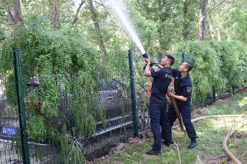 调整前置备勤警力部署,在执行动态巡逻任务同时,对杨柳絮集中地区部位、林区树木、枯草堆物等进行洒水湿化。立即协调园林绿化、环卫等部门,调动洒水车、微型消防站、政府专职消防队、小型消防站,同步进行湿化工作。发动社区物业、村居委会组织力量,对房前屋后的可燃杂物杂草进行湿化,降低火灾发生几率。