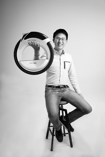 刘峰与“快轮”的第一代平衡车。 资料图片