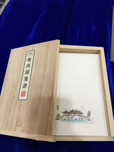 “今年五一小长假前,我们和瘦西湖景区合作,推出了这一套《瘦西湖笺谱》,在瘦西湖景点中精心挑选了60处,印制在宣纸上,装进清新典雅的木盒内。游客来到瘦西湖,看到这样的笺谱,很是动心,既可以把这些美景带回去慢慢欣赏,笺谱本身也具有实用价值。”扬州国书文化传播有限公司总经理陆国斌介绍,“五一期间,工人都在加班加点,之前准备的2000套很快就卖完了。”