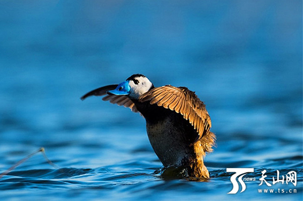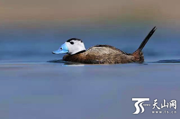 白头硬尾鸭正在水中嬉戏。图片来源:荒野新疆、老虎印象