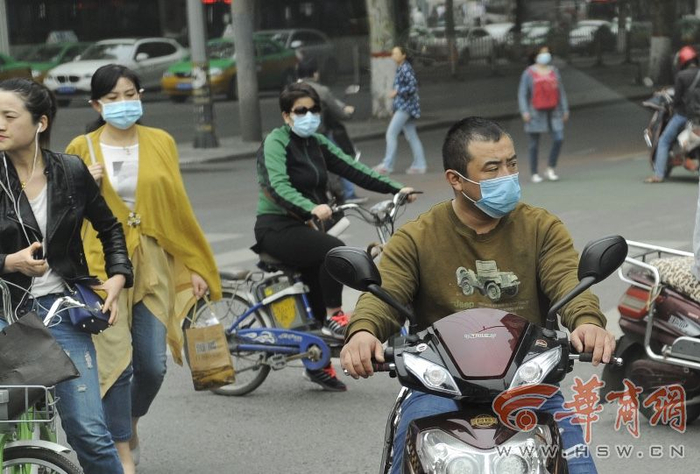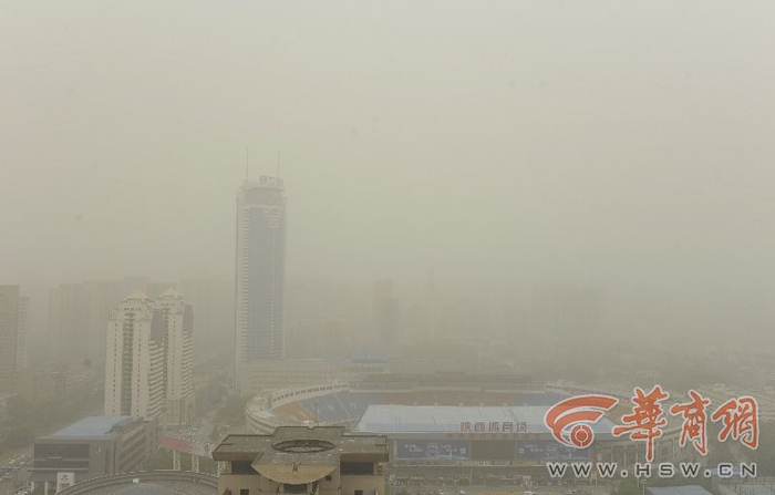 西安今日黄沙漫天能见度差 市民戴口罩出行