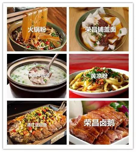 【宴客菜】:清江豆豉鱼、荣昌羊肉汤、火锅粉、荣昌卤鹅、荣昌铺盖面、荣昌黄凉粉