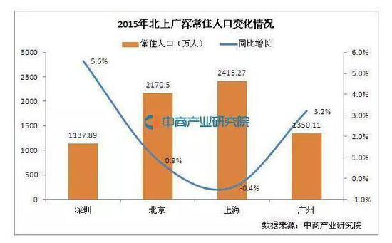 北京常住人口同比增速仅0.9%,而深圳常住人口增长速度为5.6%,是四大一线城市人口增长速度最快的城市。